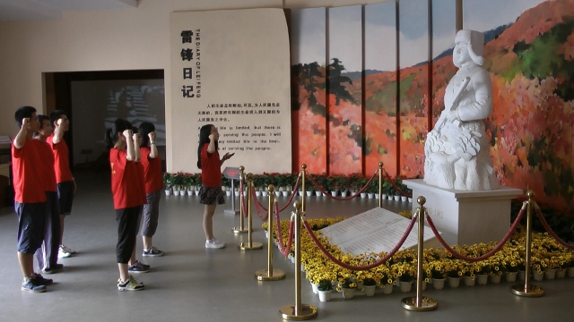 随后,实践队员们在雷锋纪念馆继续进行志愿讲解服务,为参访游客在不同展区针对雷锋生平不同阶段做了详细的讲解。