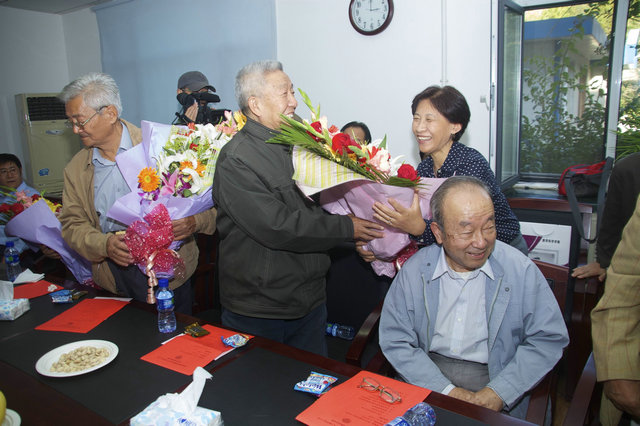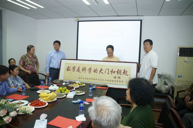 座谈会开始时,校友们首先向深受敬仰的授业恩师们献上鲜花,以表达大家的爱戴和怀念之情。然后,王兆军副院长向校友们介绍了数学院近年来的发展情况。看到数学院在教学、科研方面取得的成绩,校友们感到非常欣慰,并将一块刻有“数学是科学的大门和钥匙”的匾牌送给数学学院。