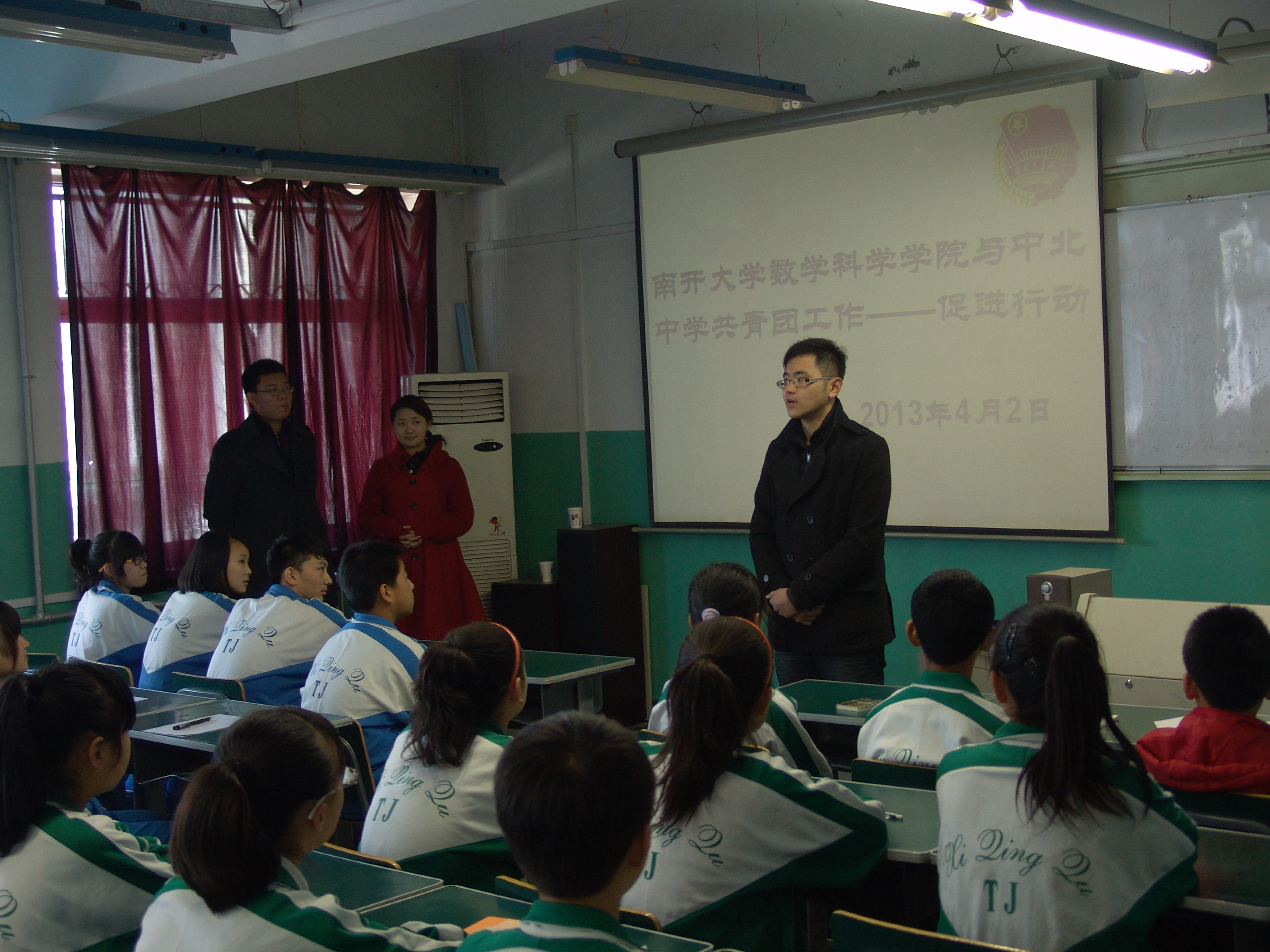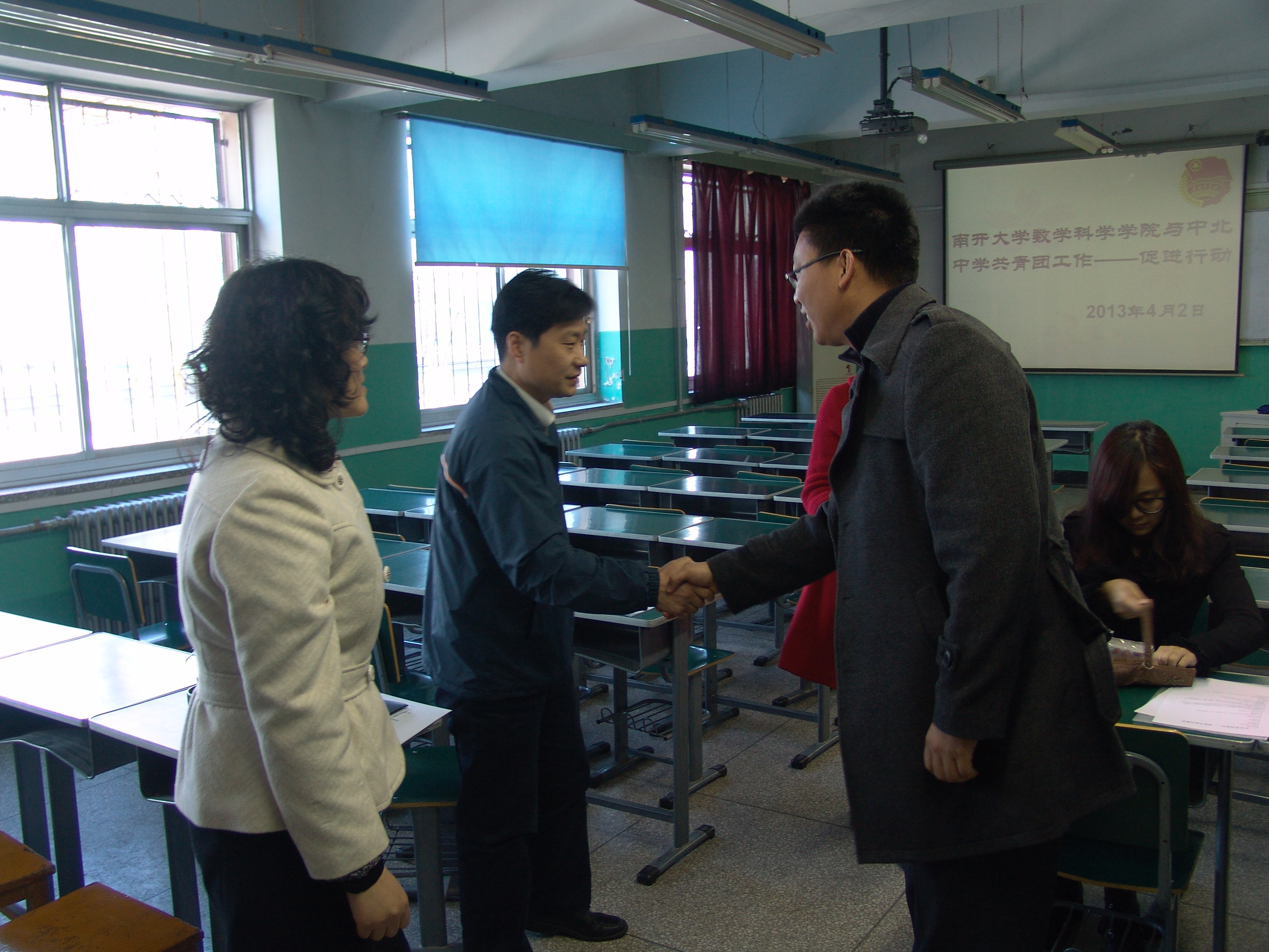 (通讯员:张紫朝)4月2日中午,william威廉中文官网团委一行前往天津市中北中学,受到中北中学师生的热烈欢迎。2012级第一班级团支部及学生会学生骨干与中北中学学生骨干进行了互动,学院团委书记李林、副书记阿依古丽与西青区教育局团委书记张子成、中北中学团委书记李柏就今后的共建活动进行了详细的商讨。