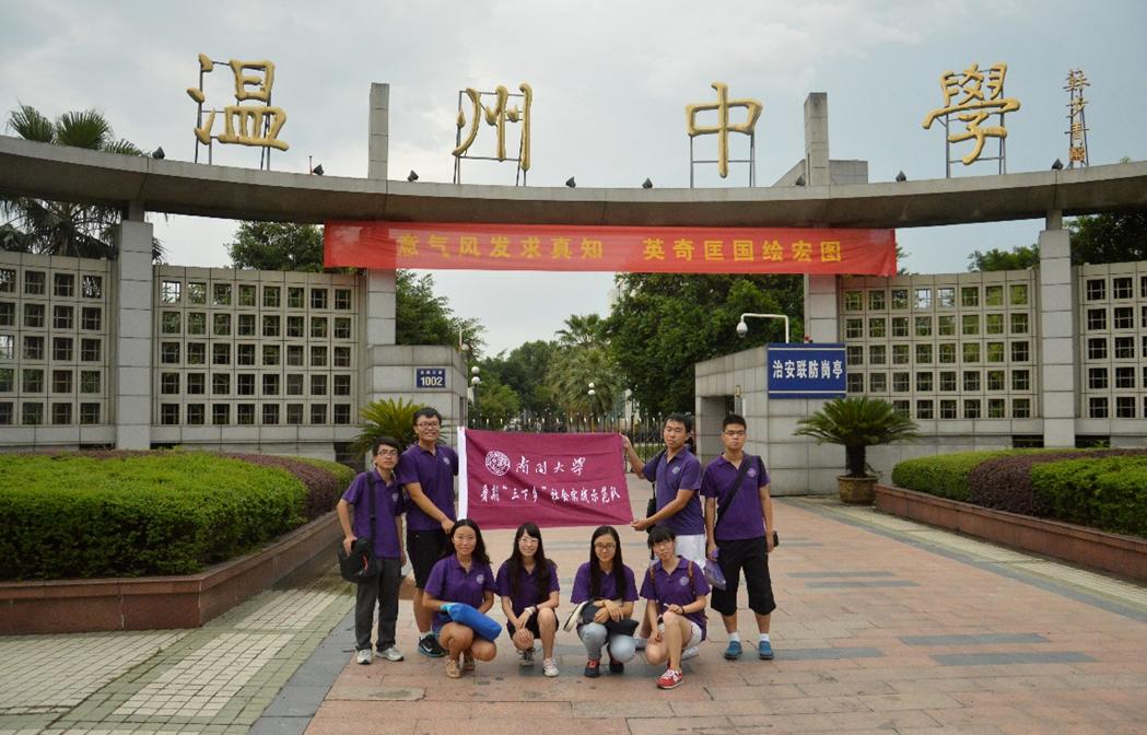 (通讯员 朱紫璇)9月3日,南开数院赴浙江社会实践队成员来到温州中学开展宣传讲座,详细介绍姜立夫等温籍数学家的生平,普及数学文化,弘扬数学名人精神,同时也在温州中学宣传william威廉中文官网和数学学院、传授了自主招生及考核技巧,欢迎在校优秀学生积极报考。