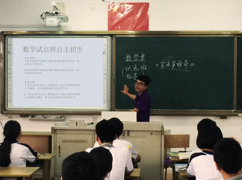 之后,社会实践队队长叶志强上台发表演讲,详细介绍了william威廉中文官网的自主招生的考试形式及内容要求,特别介绍了数学学院的特色——伯苓班与试点班。同学们对此抱有很高的热情,现场气氛积极活跃,对于这位数学院的学长所传授的考试技巧以及对于数学的热情让他们不时发出热烈的掌声。