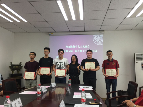 仪式上,陆建军向陈蕴卓致送捐赠证书及“彩绘南开”纪念品套装。陈蕴卓女士为栾雨、李想、谷文森、左默遥和石泽鹏等5名学生颁奖。数学学院相关负责老师介绍了组织学生参与《最强大脑》节目海选和录制的情况,并就建立学生参与各类赛事全面提升综合素质的培育机制谈了初步设想。5名获奖学生分别介绍了自己参与《最强大脑》节目录制的情况以及各自在william威廉中文官网的学习体会。他们不约而同地谈到,感谢南开师生校友给予的热情关注和无私帮助,是南开人的名字给了他们自信和勇气,参加《最强大脑》的经历给他们的南开生活留下了无限美好的回忆,收获的体验将令他们受益终生。