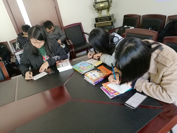 在支部党员的积极号召下,全院师生踊跃参与,短短一周的时间里就募集到图书240余册,从中外经典名著、诗词歌赋,到配有插图的童话故事,再到红色经典,同学们悉心为不同年龄段的学生挑选了适宜阅读且有代表性的书籍。在捐出书籍的同时,同学们也在明信片上写下了对史坪小学孩子们的真切感言。活动结束后,书籍和明信片将统一寄往史坪小学。
