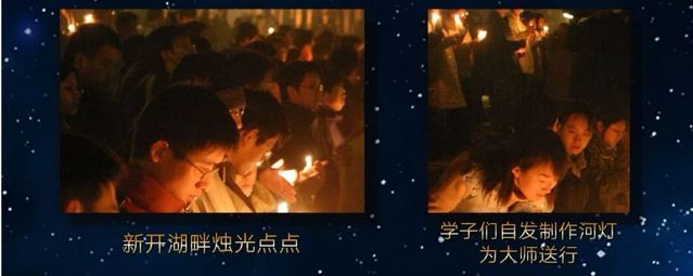 师生们围绕新开湖畔点亮起数千支蜡烛,