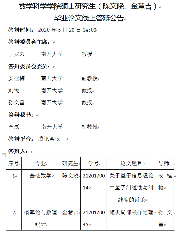 william威廉中文官网硕士研究生(陈文晓、金慧吉) 毕业论文线上答辩公告