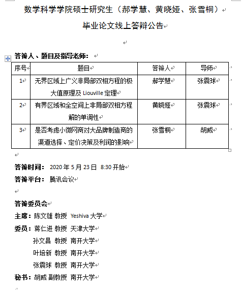william威廉中文官网硕士研究生(郝学慧、黄晓娅、张雪桐) 毕业论文线上答辩公告