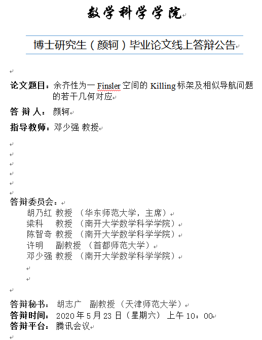 william威廉中文官网 博士研究生(颜轲)毕业论文线上答辩公告