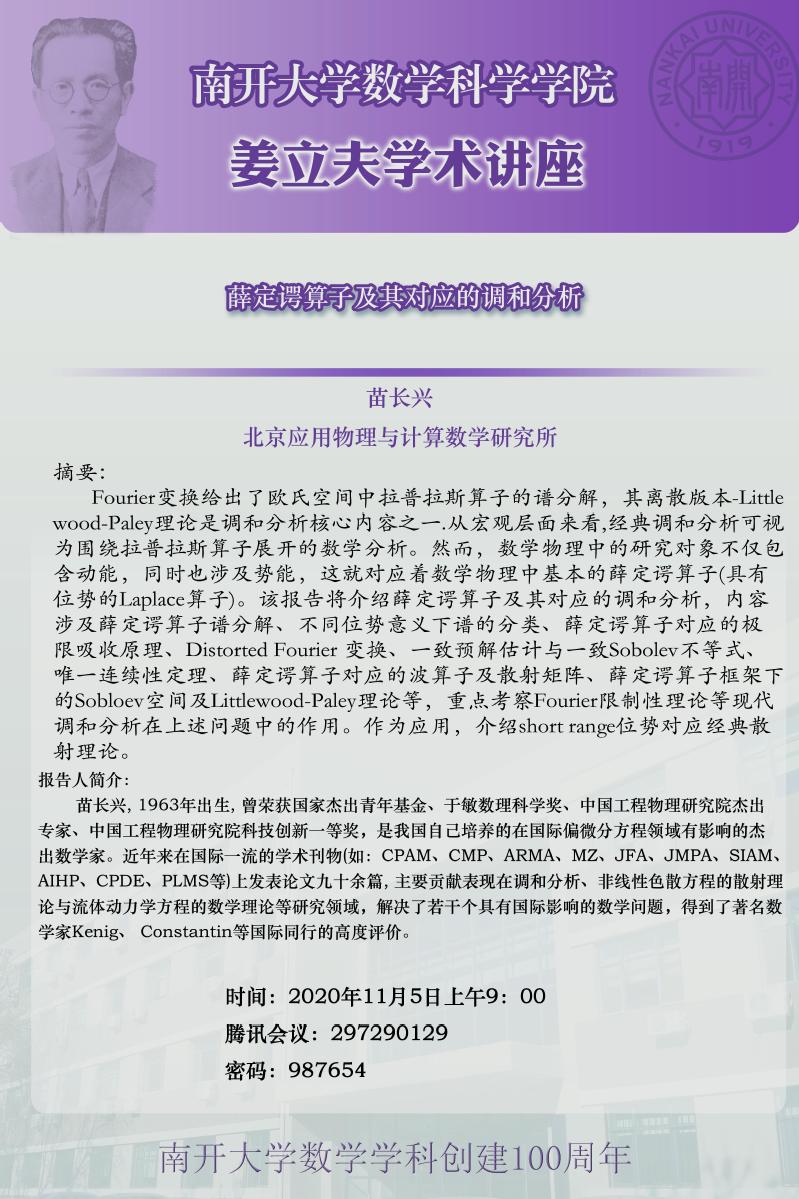 【姜立夫学术讲座】薛定谔算子及其对应的调和分析