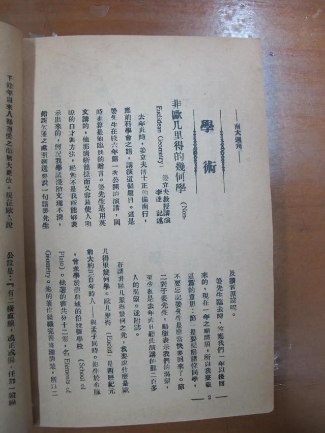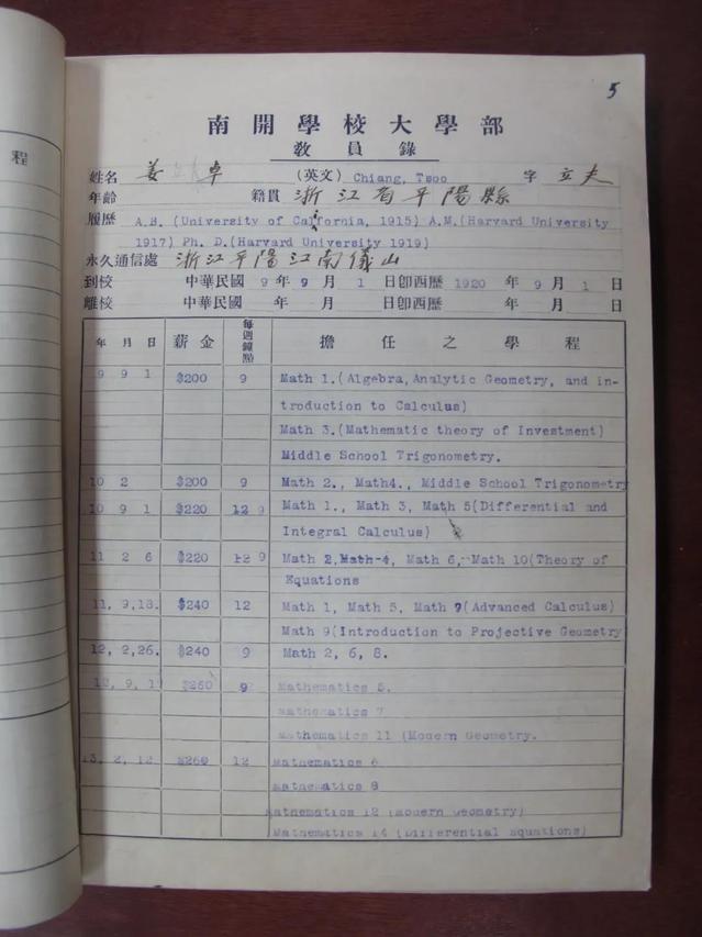 “南开之算学系,与大学部同时诞生。盖大学部未成立之前,即聘姜立夫先生计划本系之事。其时姜先生尚在美国,为欲多得教学经验,自留哈佛大学任教。”