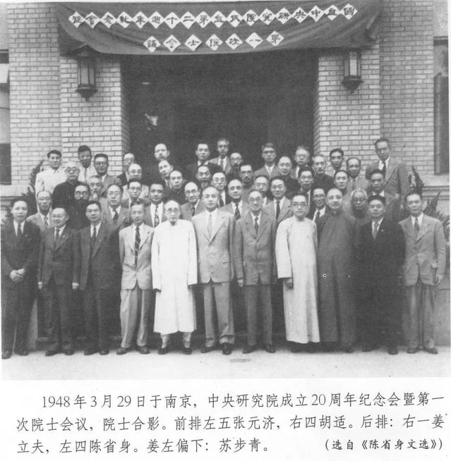 1940年,“新中国数学会”在昆明重建,姜立夫任会长。1947年,中研院数学研究所在上海成立,姜立夫任所长,其在美进修未回国前由陈省身代理所长。1948年,姜立夫、陈省身当选为中研院第一届院士,同时当选的数学家还有华罗庚、苏步青、许宝騄。1949年初,姜立夫被迫随所迁台,后借故到广州,应邀创办岭南大学数学系。中研院曾一再坚劝姜立夫赴台,均遭拒绝。