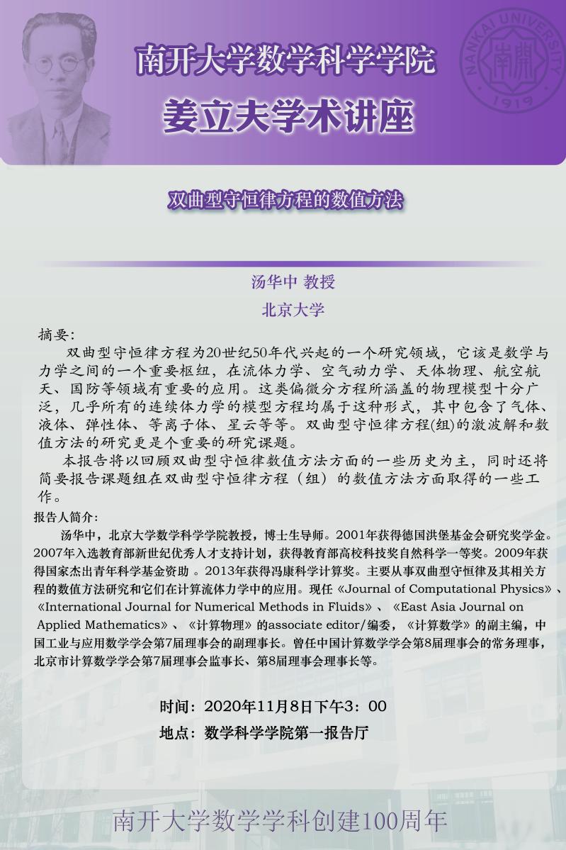 【姜立夫学术讲座】双曲型守恒律方程的数值方法
