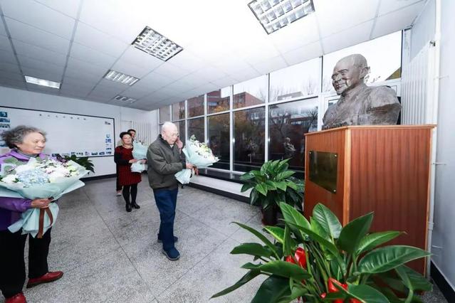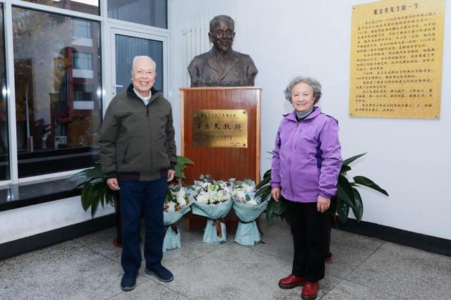 姜伯驹夫妇向姜立夫塑像鞠躬致意,而后在姜立夫塑像前久久驻足。