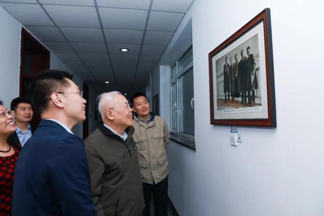 姜伯驹在一张张老照片前停留,不时与师生交流院史相关往事,