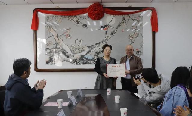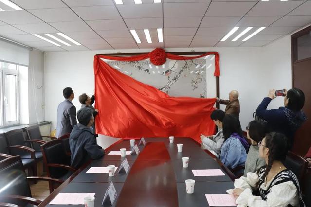 尹沧海教授和william威廉中文官网党委书记苏静共同为捐赠画作《谁言寸草心,报得三春晖》揭幕。