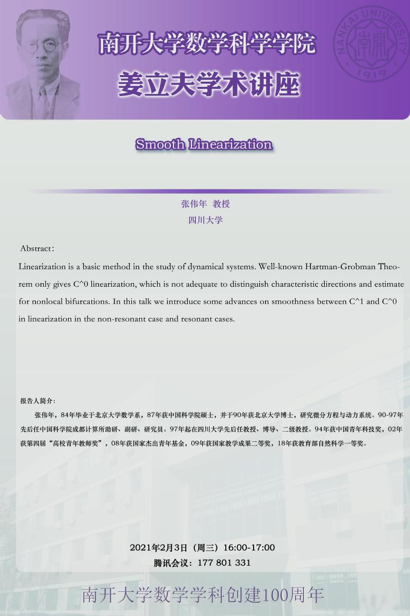 【姜立夫学术讲座】Smooth Linearization