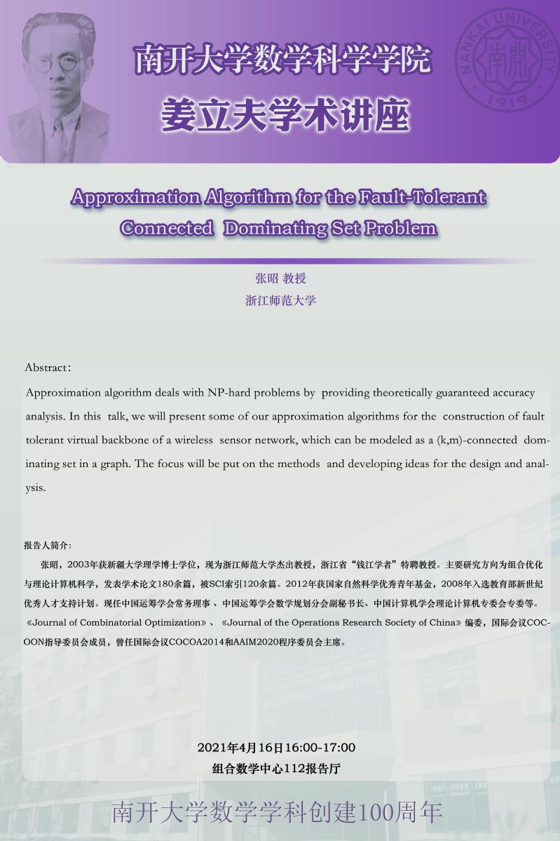 【姜立夫学术讲座】 Approximation Algorithm for the Fault-Tolerant Connected Dominating Set Problem