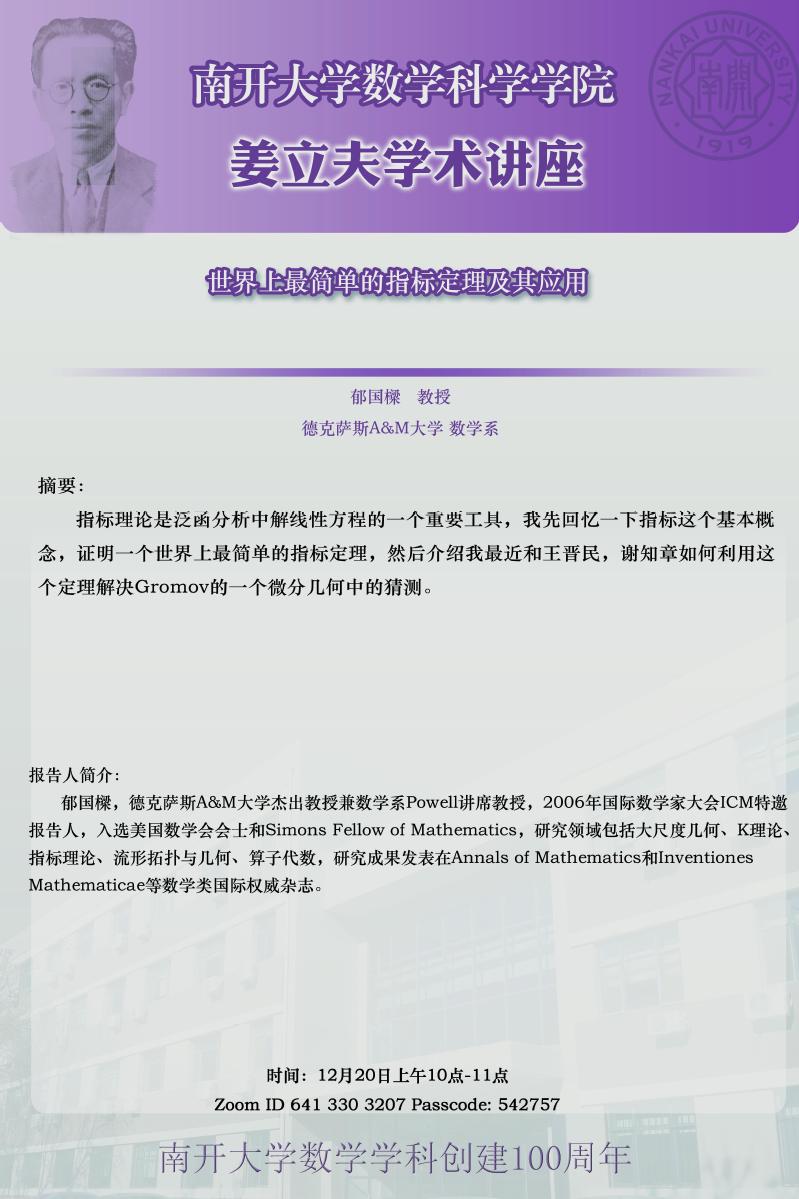 【姜立夫学术讲座】世界上最简单的指标定理及其应用