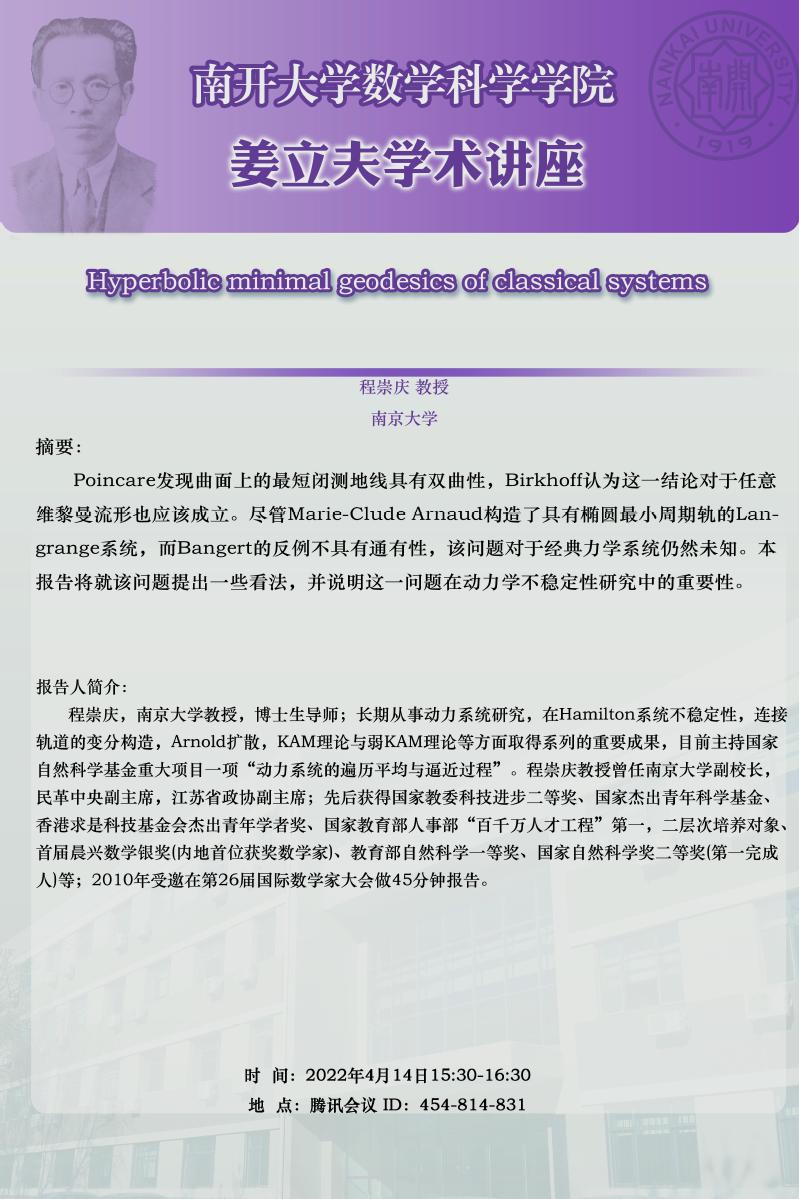 【姜立夫学术讲座】Hyperbolic minimal geodesics of classical systems