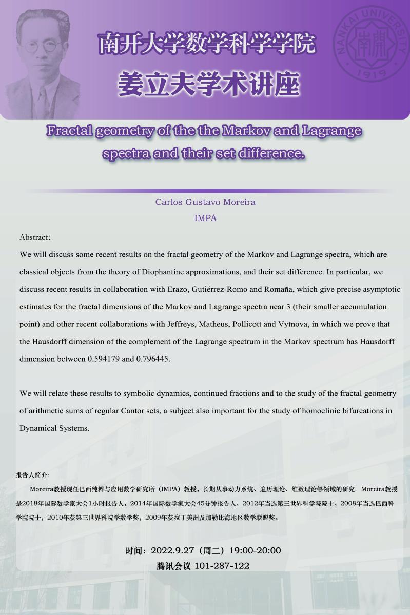 【姜立夫学术讲座】Fractal geometry of the the Markov and Lagrange spectra and their set difference.