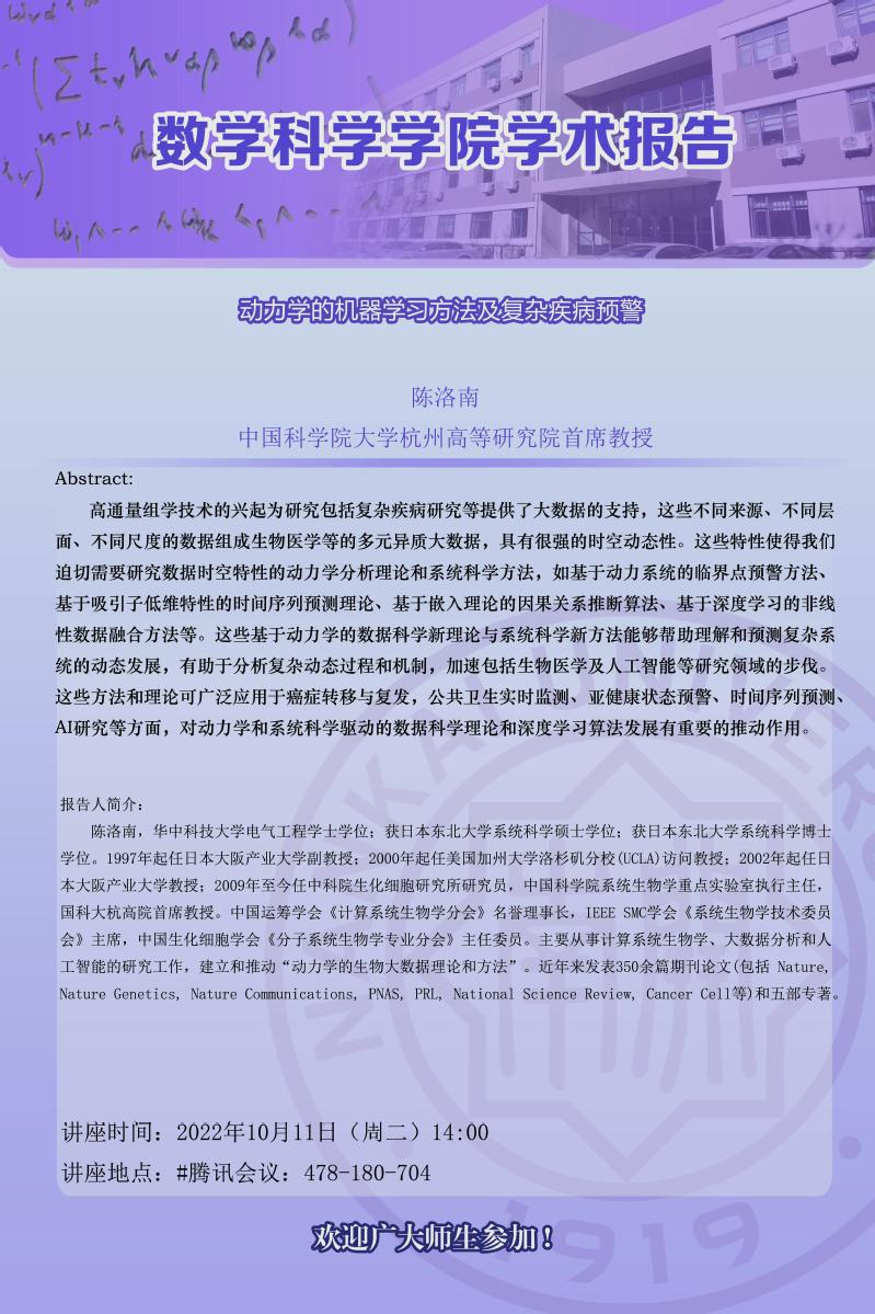 动力学的机器学习方法及复杂疾病预警