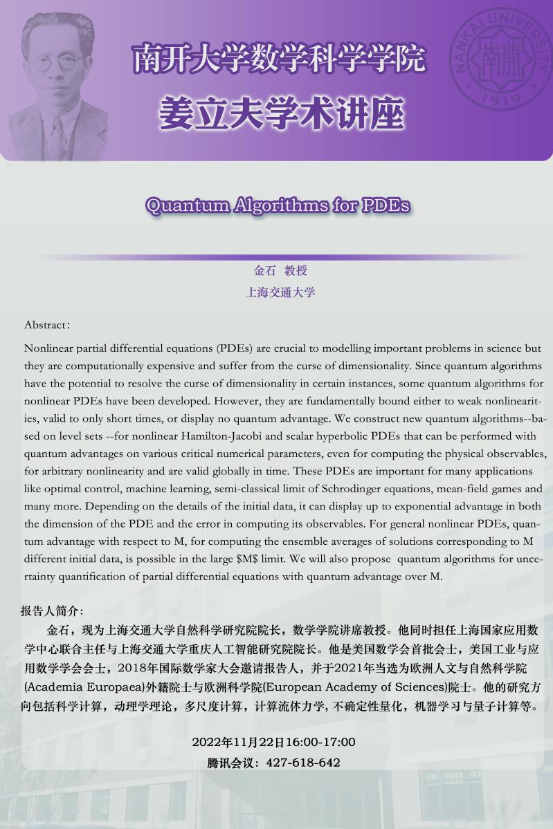 【姜立夫学术讲座】Quantum Algorithms for PDEs