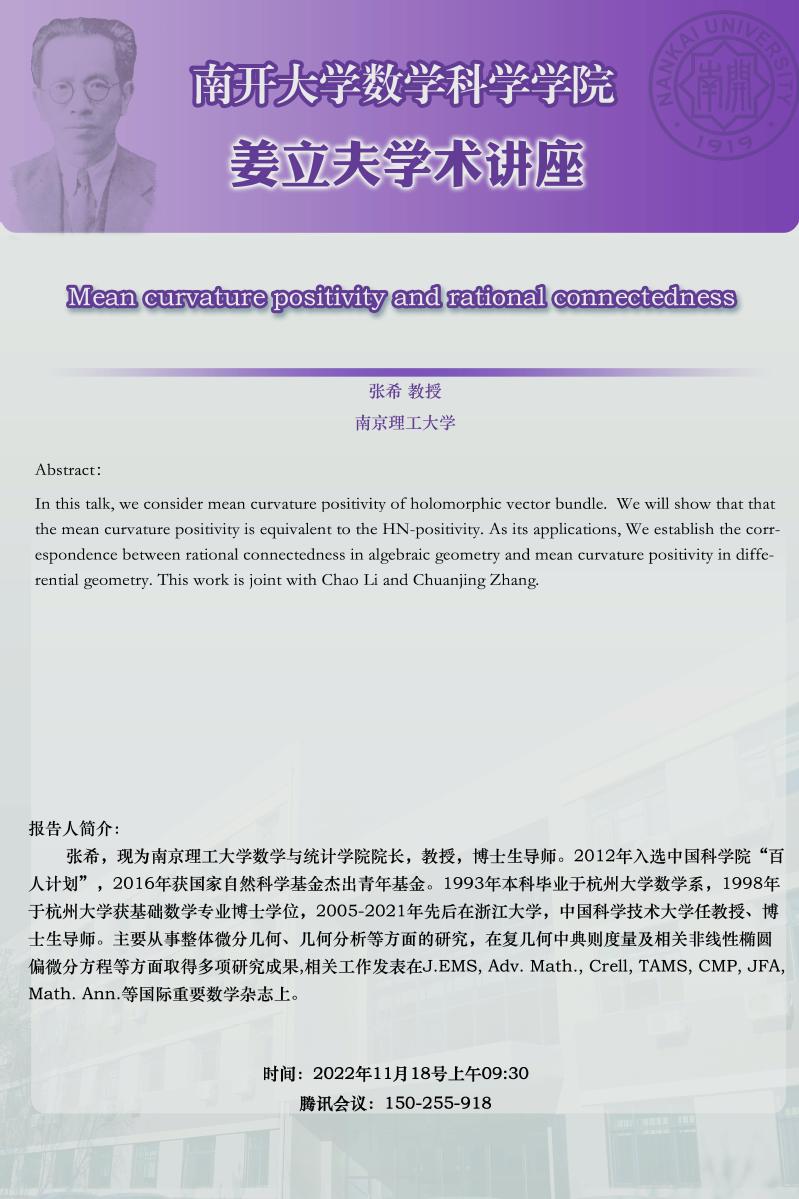 【姜立夫学术讲座】Mean curvature positivity and rational connectedness