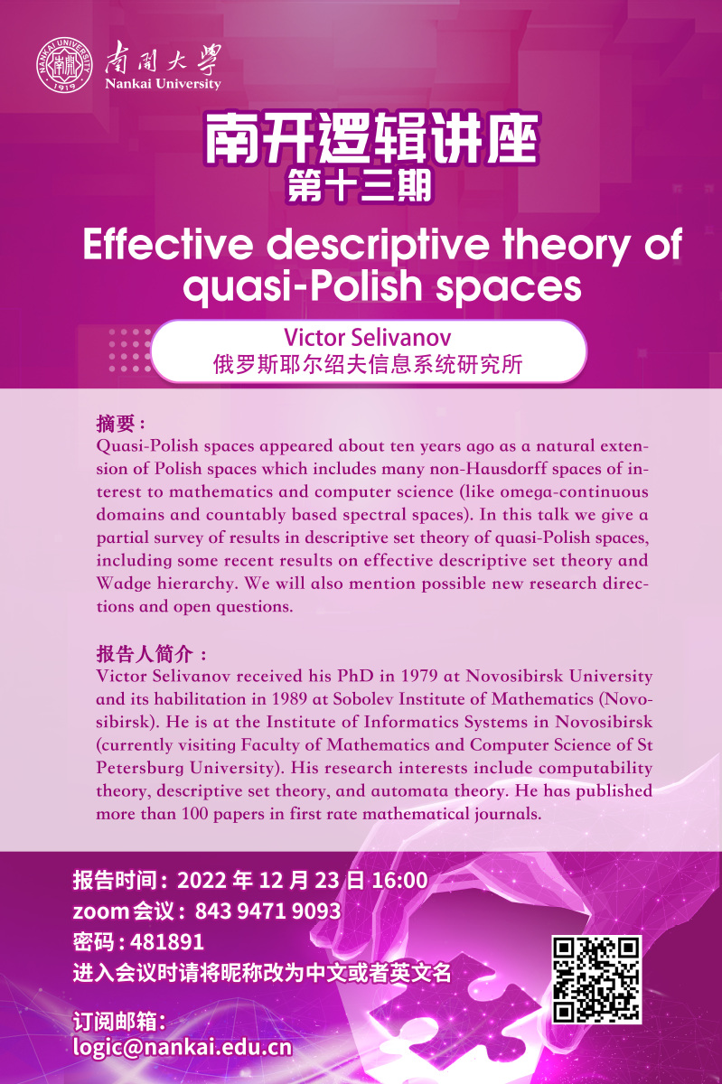 南开逻辑讲座第十三期--Victor Selivanov