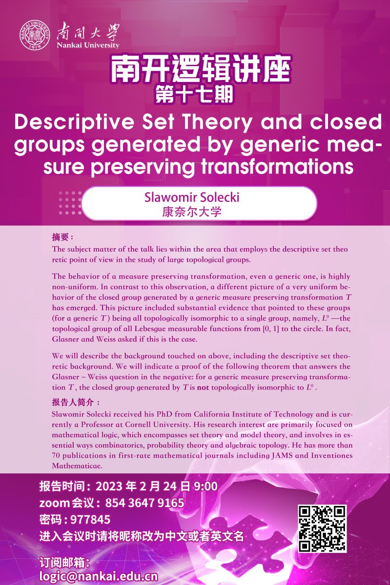 南开逻辑讲座第十七期--Slawomir Solecki