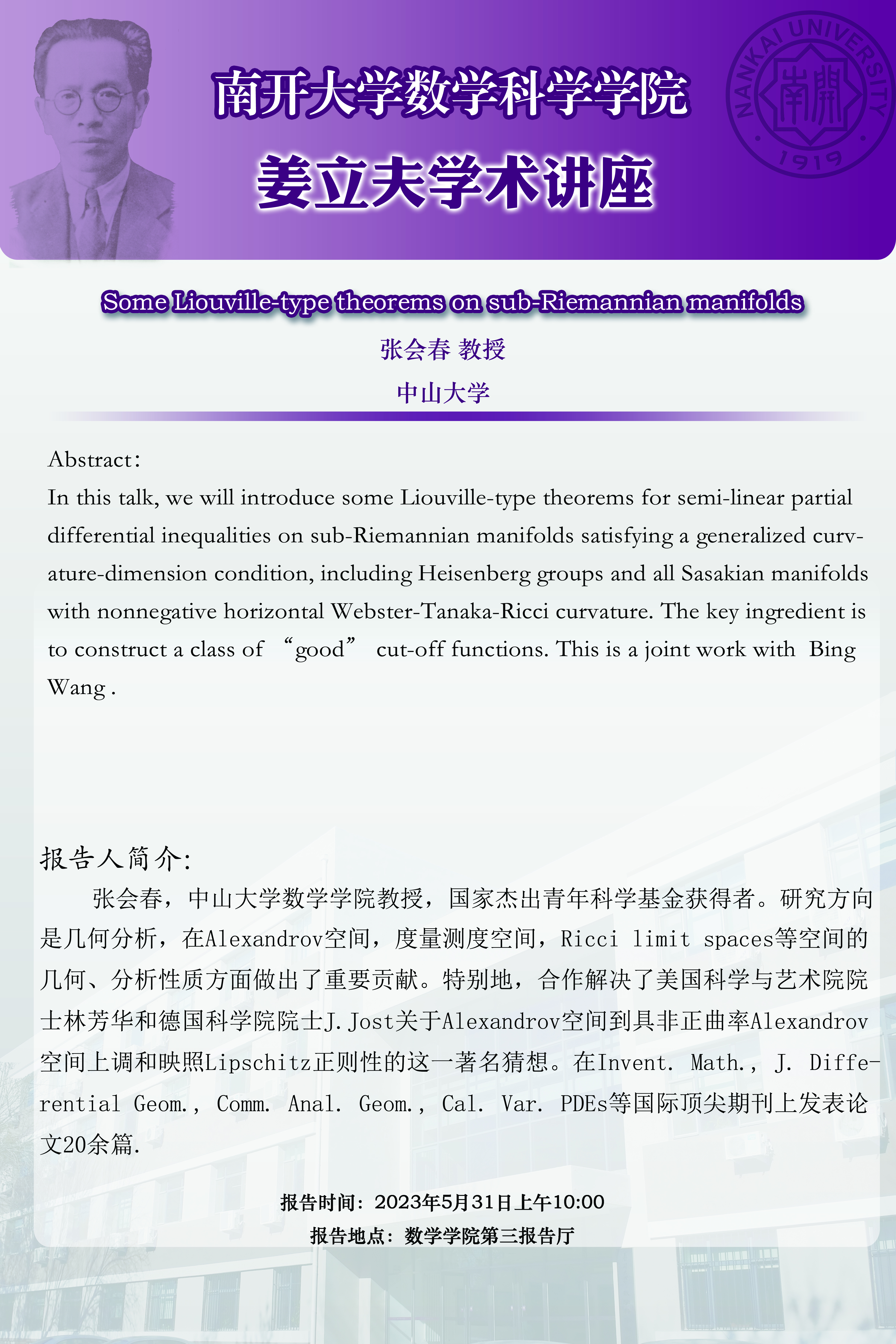 【姜立夫学术讲座】 Some Liouville-type theorems on sub-Riemannian manifolds