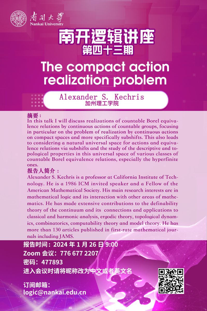 南开逻辑讲座第四十三期--Alexander S. Kechris