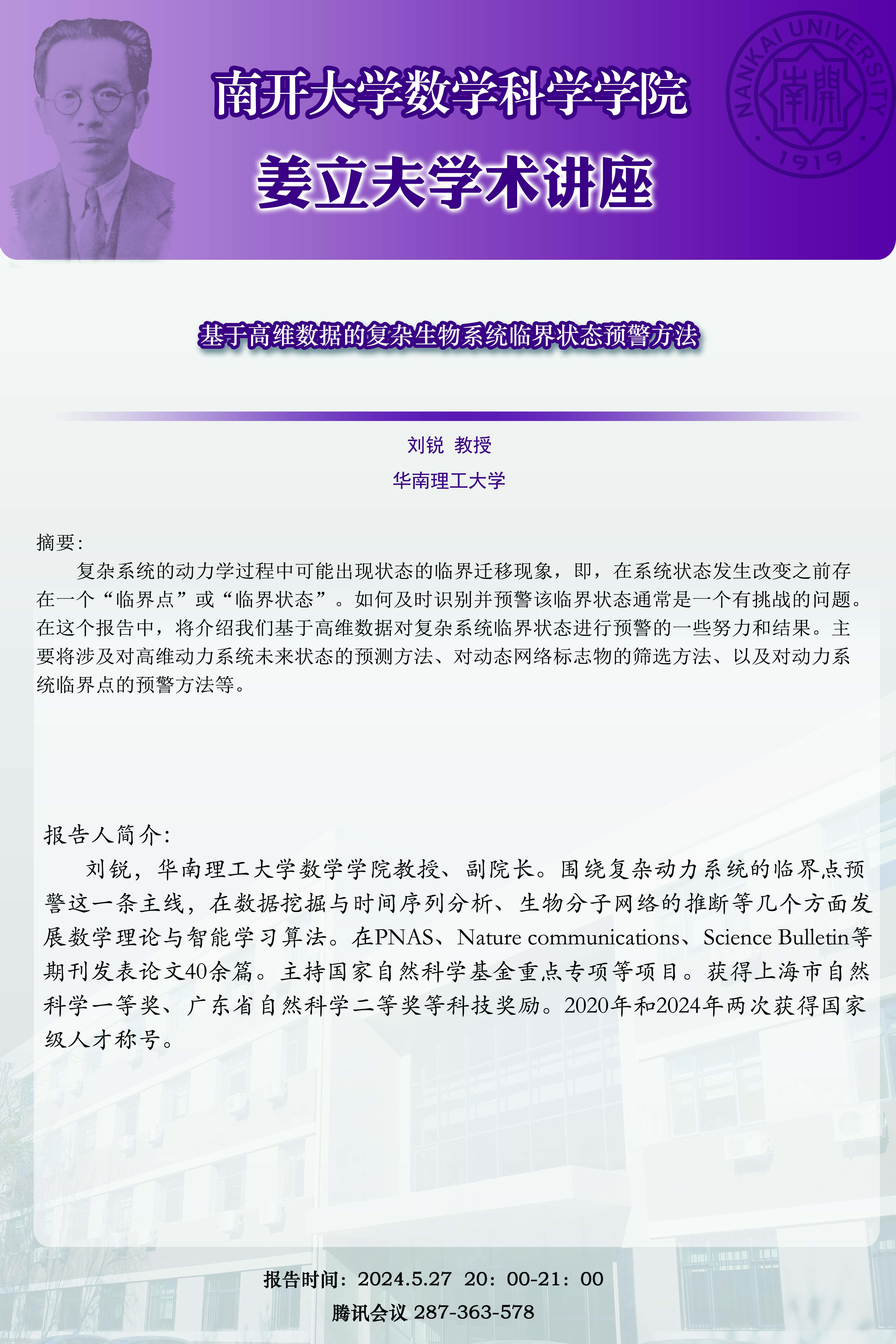 【姜立夫学术讲座】基于高维数据的复杂生物系统临界状态预警方法