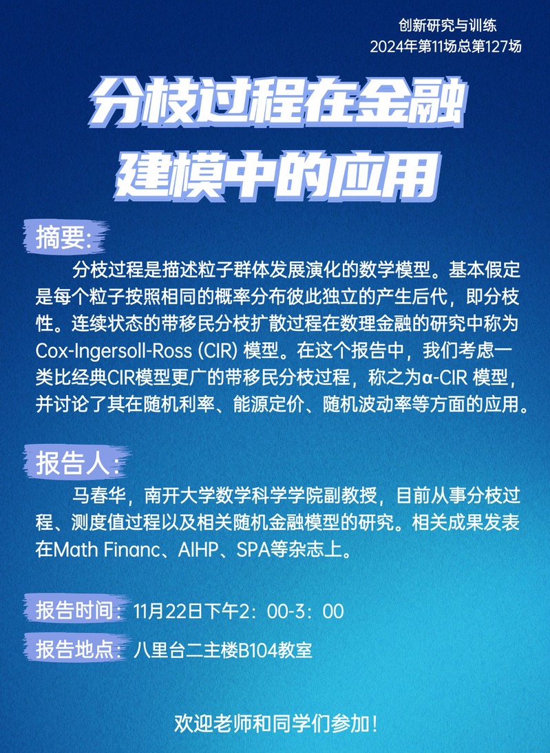 创新研究与训练 课程讲座(2024年第11场)
