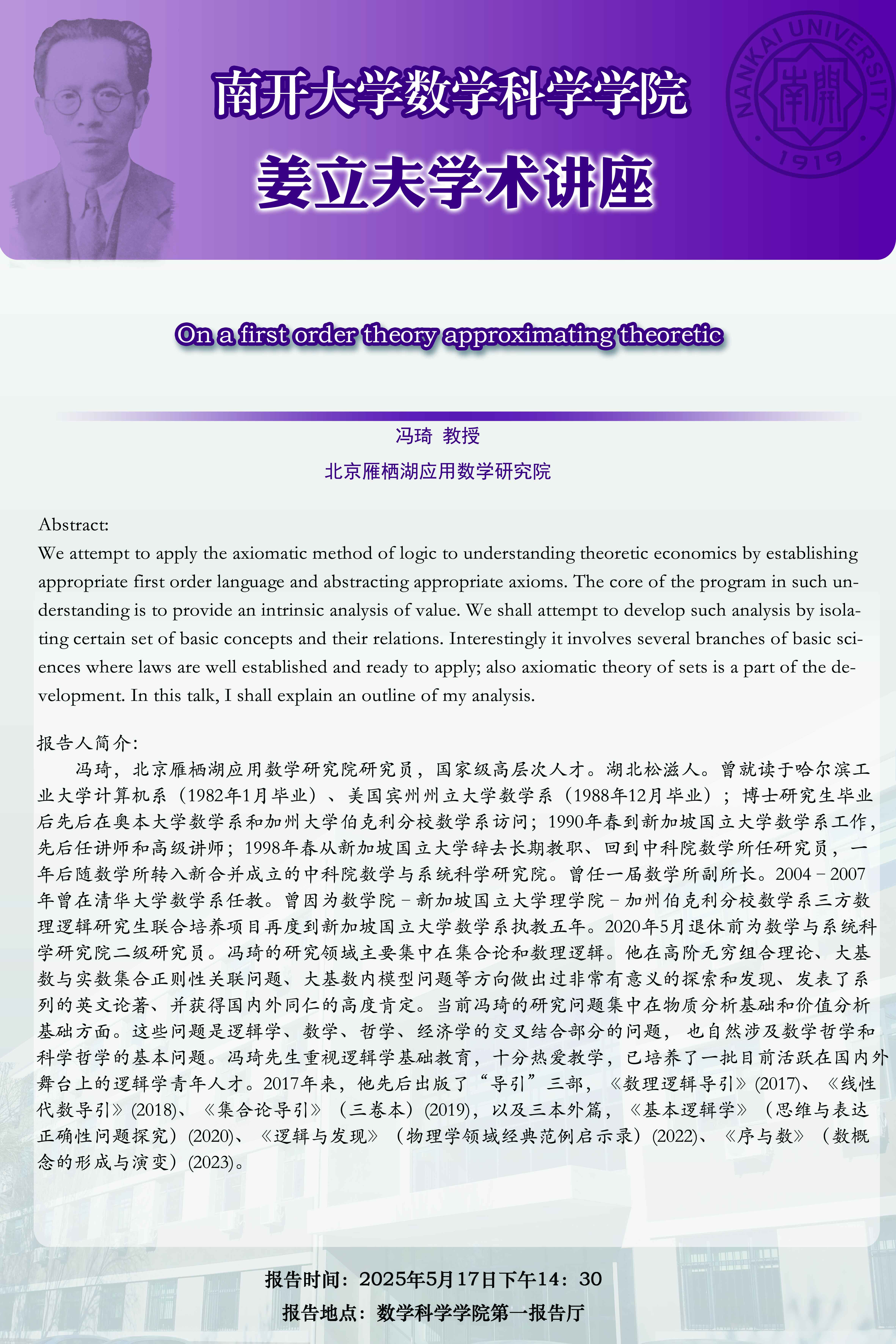 【姜立夫学术讲座】On a first order theory approximating theoretic