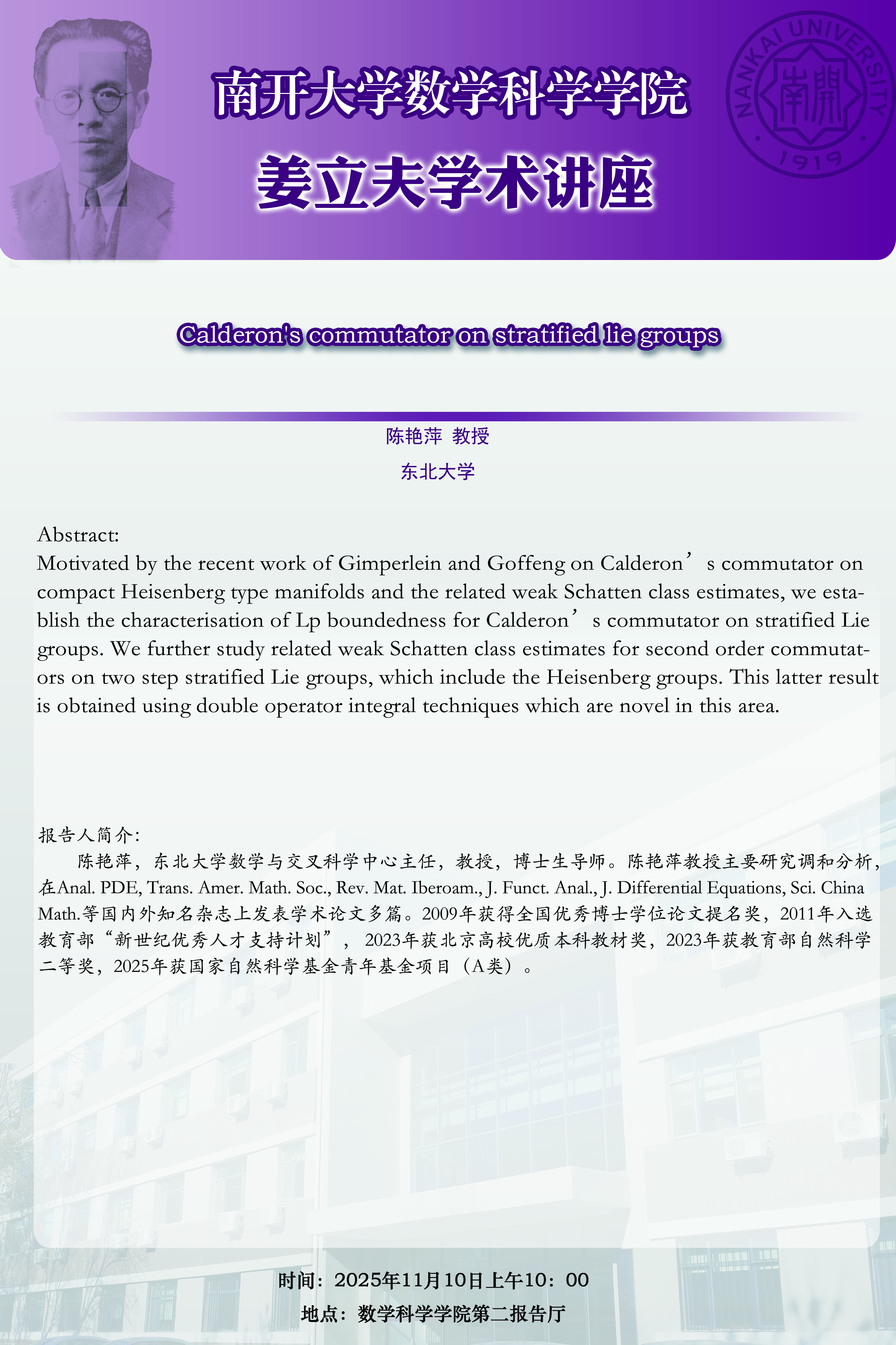 【姜立夫学术讲座】Calderon's commutator on stratified lie groups