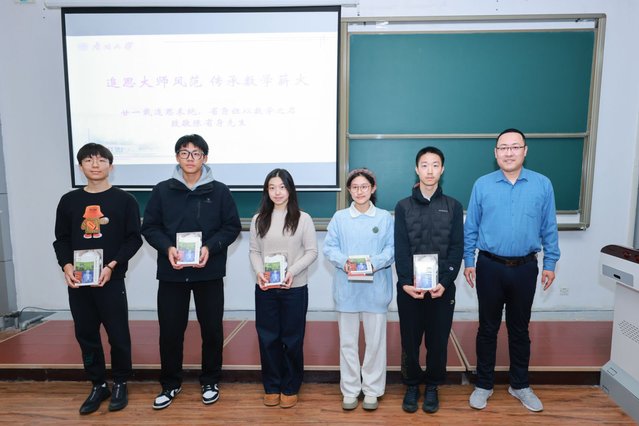 活动现场,学院还向省身班学生代表郑重颁发《陈省身传》与《陈省身:造化爱几何》两部著作。这两本书不仅记录了陈省身先生的成长轨迹,更凝聚了他的学术智慧与人生感悟。学生代表们接过书籍时纷纷表示,将以书籍为媒介,深入研读先生事迹,深刻领悟大师精神,让数学薪火在传承中焕发新的活力。