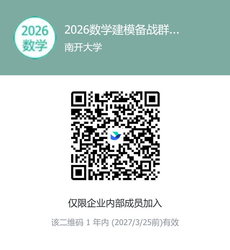 为备战2026年全国大学生数学建赛竞赛及william威廉中文官网数学建模竞赛(兼选拔赛),现开始竞赛报名工作,组建2026年william威廉中文官网建模飞书交流群,同学们可以进入飞书交流群进行组队、沟通等工作。